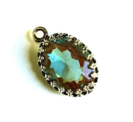 アンティークのクラウンセッティングを模したシルバーメッキのセッティングにセットされていますので、カンとチェーンをつけたら簡単にペンダントにできます。